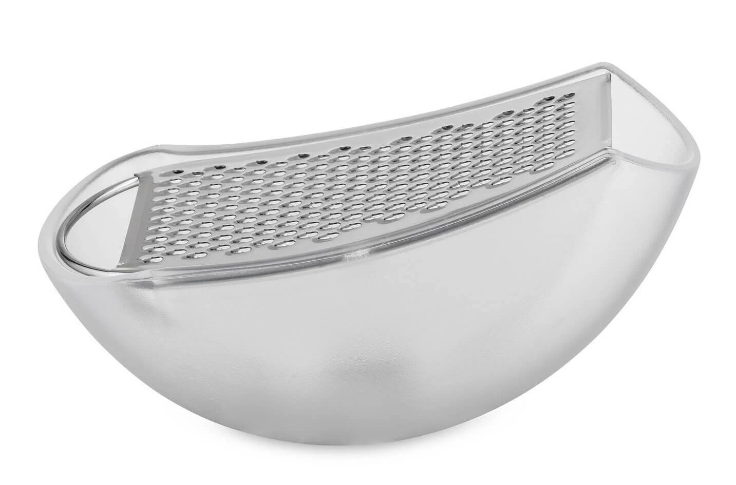 De Alessi Parmenide kaasrasp is ontworpen door Alejandro Ruiz, en is tegelijk een kaasrasp en een opvangbakje. Door de vlakke onderzijde kan de Alessi Parmenide stevig op tafel staan en worden gebruikt als kaasstrooier. Deze kaasrasp is een moderne designklassieker en wordt ook vertegenwoordigd in de collectie van het Museum of Modern Art in New York.