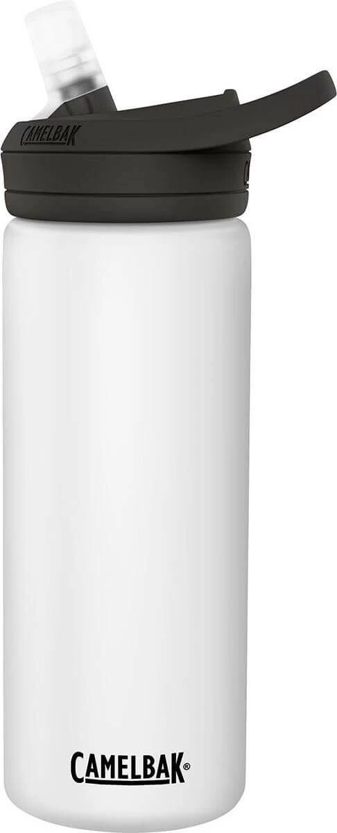 De witte Camelbak Eddy+ Vacuum Insulated drinkfles is gemaakt van dubbelwandig 18/10-roestvrijstaal en heeft een BPA-vrije kunstof dop. De fles heeft een inhoud van 600 ml en is 26 cm hoog. De fles is voorzien van een speciale lekvrije dop die er tevens voor zorgt dat u per slok 25 % meer water inneemt dan bij reguliere drinkdoppen. De fles is perfect onderweg te gebruiken, bijvoorbeeld tijdens het autorijden. Dankzij de vacuümgeisoleerde wand blijft de buitenkant van de fles droog. Gebruik de Camelback drinkfles voor het meenemen van koude en warme dranken; deze fles houdt vloeistoffen namelijk 8 uur warm of 13 uur koud.