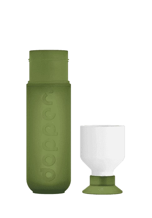 De Dopper waterfles bestaat uit 3 onderdelen. De fles, de gekleurde top en een dop. U kunt op 2 verschillende manieren uit de waterfles drinken: door de hele top van de Dopper af te draaien en te gebruiken als glaasje of door de enkel de dop af te nemen en direct uit de Dopper te drinken.
