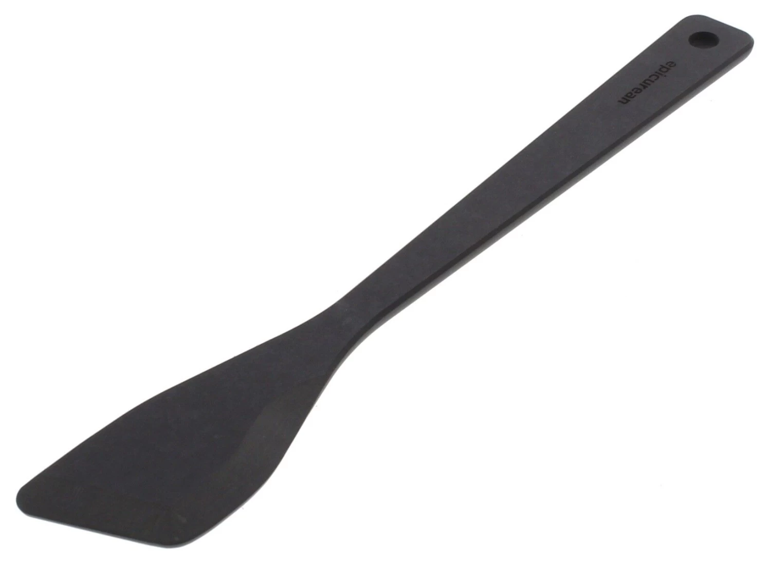 De Epicurean Chef Series schuine keerspatel is gemaakt van papiercomposiet met een zwarte kleur. De spatel heeft een lengte van 34,5 cm en is hittebestendig tot 176 graden Celsius. Gebruik de spatel voor het opscheppen en roeren van verschillende gerechten of etenswaren.