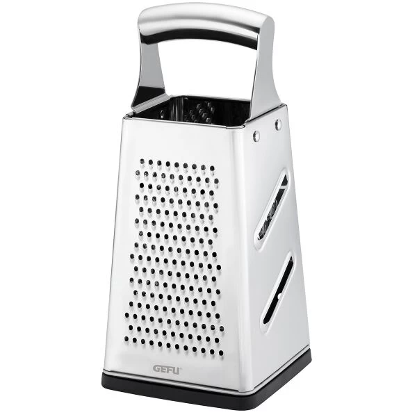 Gebruik de Gefu Grato blokrasp voor het raspen of schaven van allerlei verschillende etenswaren. Dankzij de ergonomische handgreep en antislipfunctie van de deksel, staat de rasp erg stabiel op het aanrecht. De rasp is vaatwasmachinebestendig.