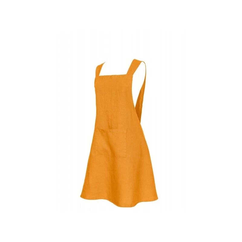 Haal het luxe gevoel in huis met het Kyoto-schort van Haomy! Het linnen design heeft een afmeting van 90 x 130 cm en heeft een chamoisgele kleur. Het schort is voorzien van een effen patroon, met een voorzak. Gebruik het schort in de keuken als bescherming tegen spetters van het koken.