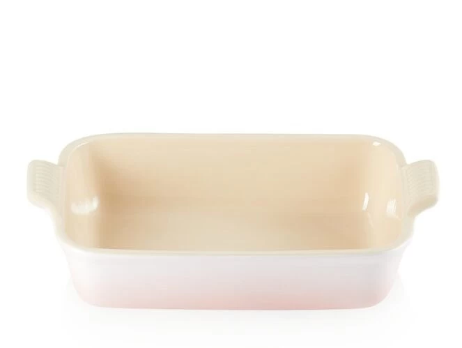 De Le Creuset ovenschaal is gemaakt van roze geglazuurd aardewerk en is 26 x 18 cm. Inclusief de grepen is de lengte 31 cm. De inhoud bedraagt 2,3 liter. Bereid en serveer in de ovenschaal gerechten zoals lasagne, gebraden gevogelte en aardappelgratin.