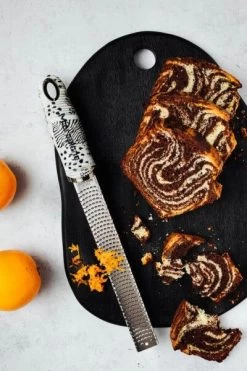 De Microplane Dual Blade rasp is vervaardigd uit roestvrij staal met een ergonomische antislip handgreep. U gebruikt de rasp voor het raspen van verschillende soorten ingrediënten, van wortelen, noten en chocolade tot het zesten van citrusvruchten.