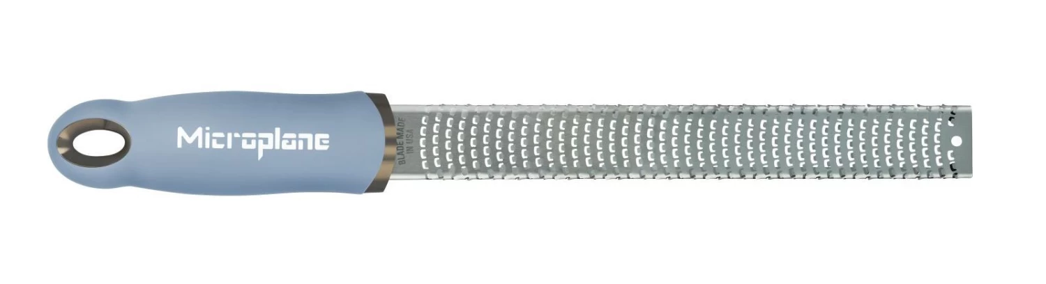 De Microplane Premium Series zesteur / rasp is vervaardigd uit roestvrij staal en kunststof in Sky Blue. De rasp heeft een fijn profiel voor het zesten van citrusschil en het raspen van harde ingrediënten als kaneel, nootmuskaat, Parmezaanse kaas en chocolade. Het raspoppervlak is 20 x 3 cm.