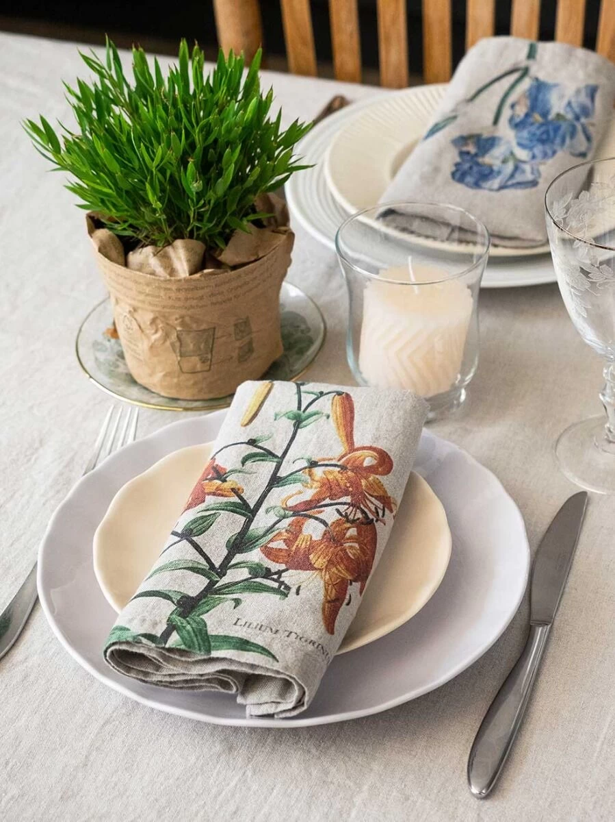 De Linoroom servetten zijn vervaardigd uit eco-vriendelijke linnen en is uitgevoerd met diverse motieven.