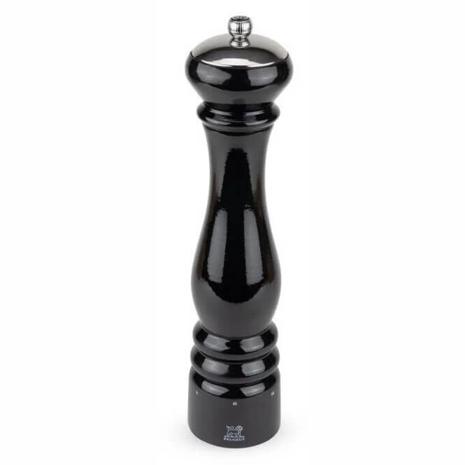 De Peugeot Paris Icône Noir pepermolen heeft het klassieke Peugeot model dat is herzien. De molen is gemaakt van zwart gelakt beukenhout. Aan de bovenzijde heeft de molen een roestvrijstalen kap. Hierdoor krijg de 30 cm hoge molen een moderne uitstraling. Het maalwerk in de molen is vervaardigd uit roestvrij staal. De molen is voorzien van u-select, waarmee u de grofheid van de korrel traploos kunt instellen. Op de metalen draaiknop bovenop bevindt zich de het logo van Peugeot.
