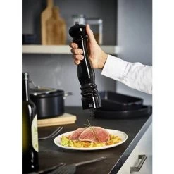 De geüpdatete klassieker Peugeot Paris Icône pepermolen heeft een roestvrijstalen maalwerk met u-select, waarmee de maalgraad traploos instelbaar is van poederfijn tot grof gemalen. Het maalwerk van de molen is uitgerust met een dubbele rij schroefvormige tanden die de peperbolletjes vastnemen en ze naar beneden brengen. Om deze vervolgens te blokkeren en te malen.