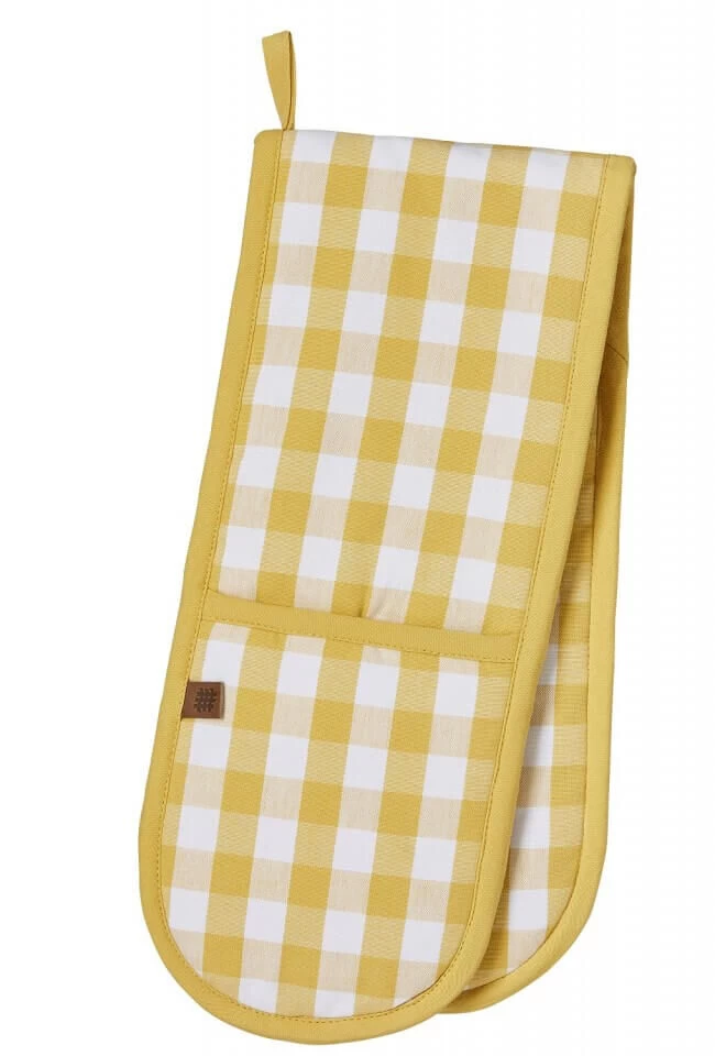 De gele lange pannenlap van Ulster Weavers is vervaardigd van katoen en voorzien van een polyester vulling voor isolatie en bescherming. De pannenlap is vormgegeven met een Gingham Yellow print, een handig ophangoog en twee brede steekvakken. Gebruik de pannenlap om hete pannen van het fornuis of uit de oven te pakken. De pannenlap is 88 cm lang en 18 cm breed.