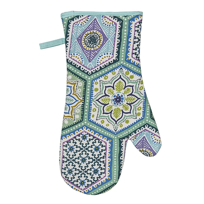 De groene Lisbon Tiles ovenwant van Ulster Weavers is vervaardigd van katoen en voorzien van een polyester vulling voor isolatie en bescherming. Gebruik de ovenwant om hete pannen van het fornuis of uit de oven te pakken. De ovenwant is 37 cm lang en 20 cm breed.